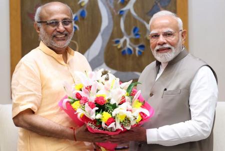 Radhakrishnan was felicitated at the meeting of MPs here by their top brass, including Prime Minister Modi and several BJP allies.