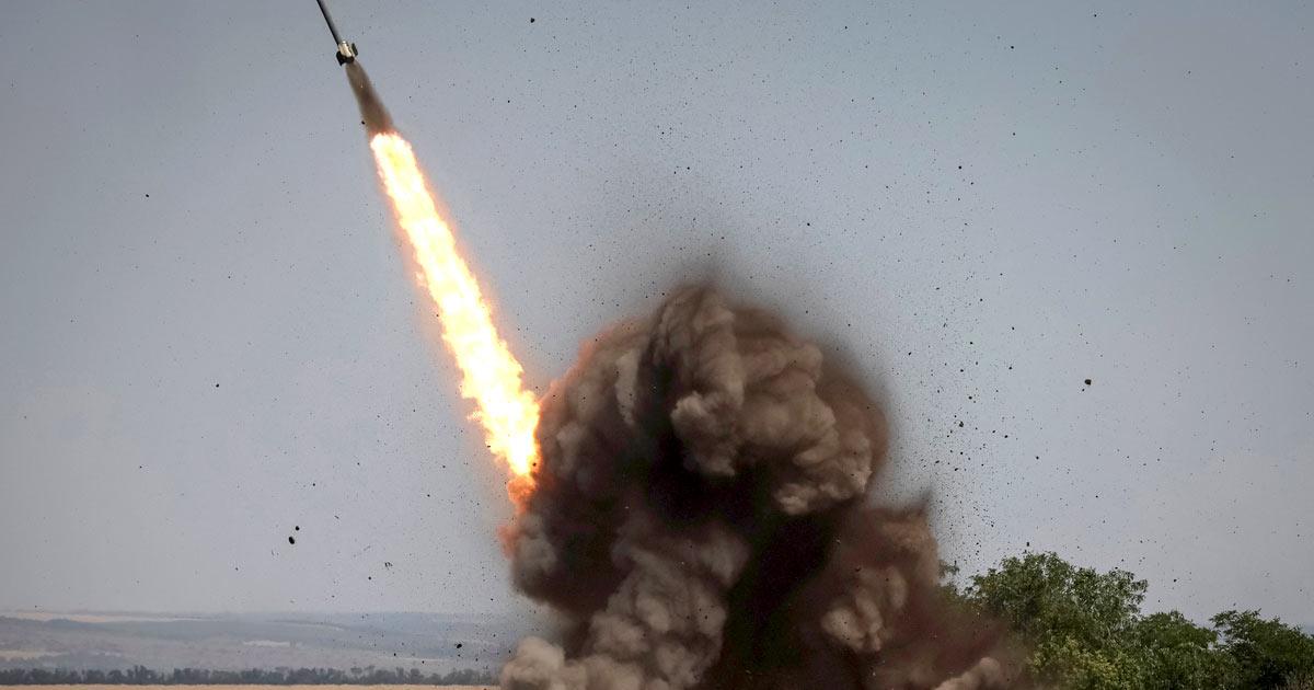 IMAGE: Ukrainian soldiers fire a rocket launcher in the Donbas region. Photograph: Gleb Garanich/Reuters