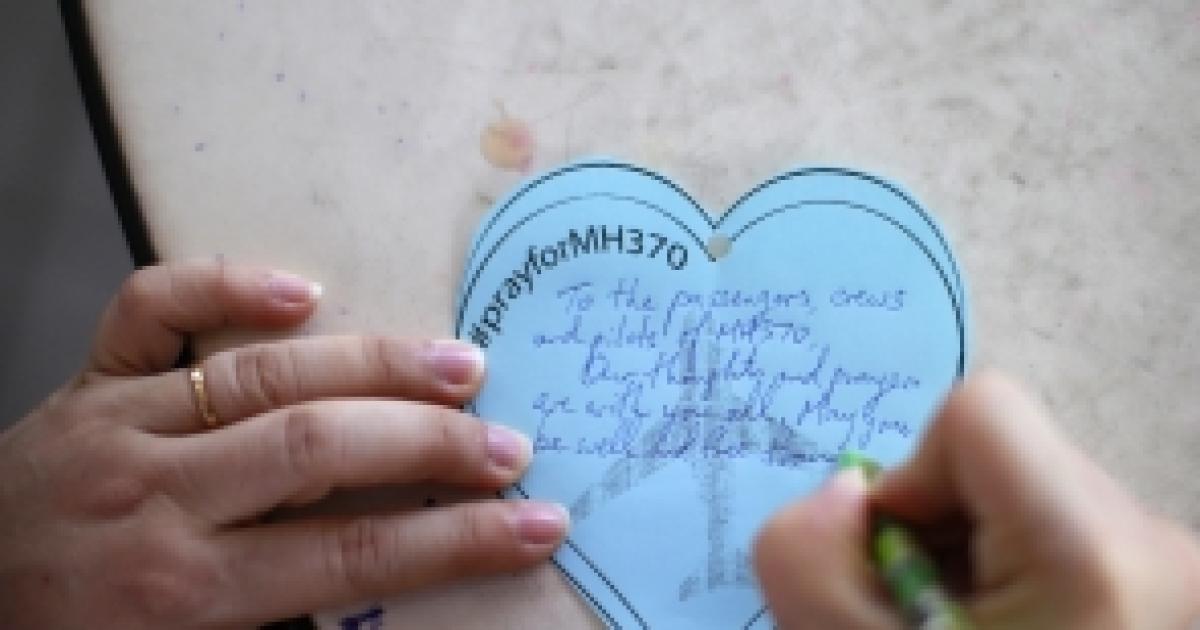 Image: A woman writes a message expressing hope for the family members of passengers on board the missing Malaysia Airlines flight MH370 in a Buddhist temple in Subang Jaya, outside Kuala Lumpur ' Image: Samsul Said/Reuters