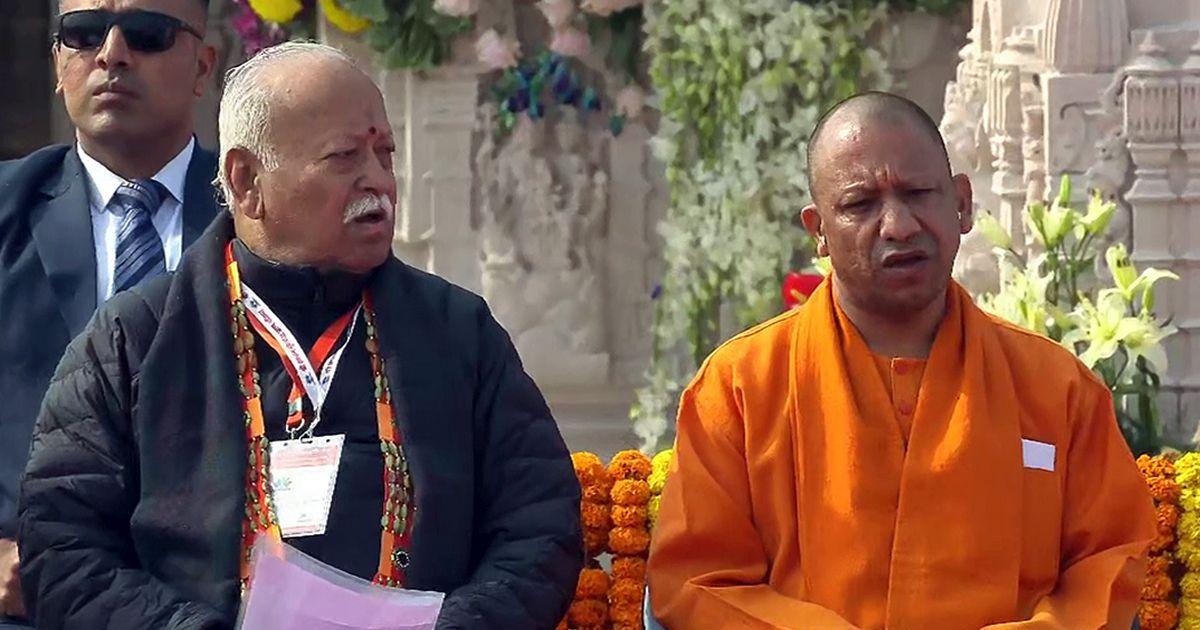 IMAGE: RSS chief Mohan Bhagwat and Uttar Pradesh Chief Minister Yogi Adityanath. Photograph: ANI Photo