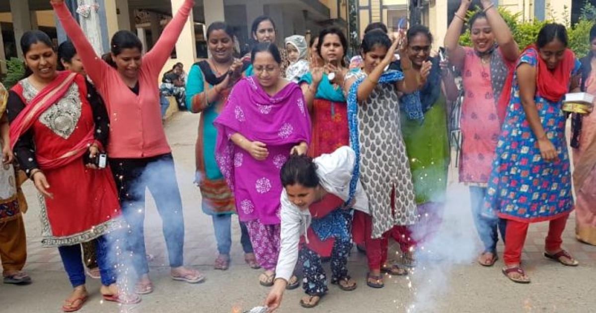 Men and women started distributing sweets to police personnel even as some celebrated the killing of the four accused by bursting fire crackers near the encounter site and in other parts of the city.