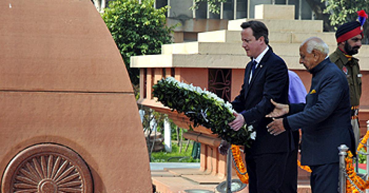 Image: Britain's Prime Minister David Cameron places a wreath at the Jallianwala Bagh memorial | Photograph: Munish Sharma/Reuters