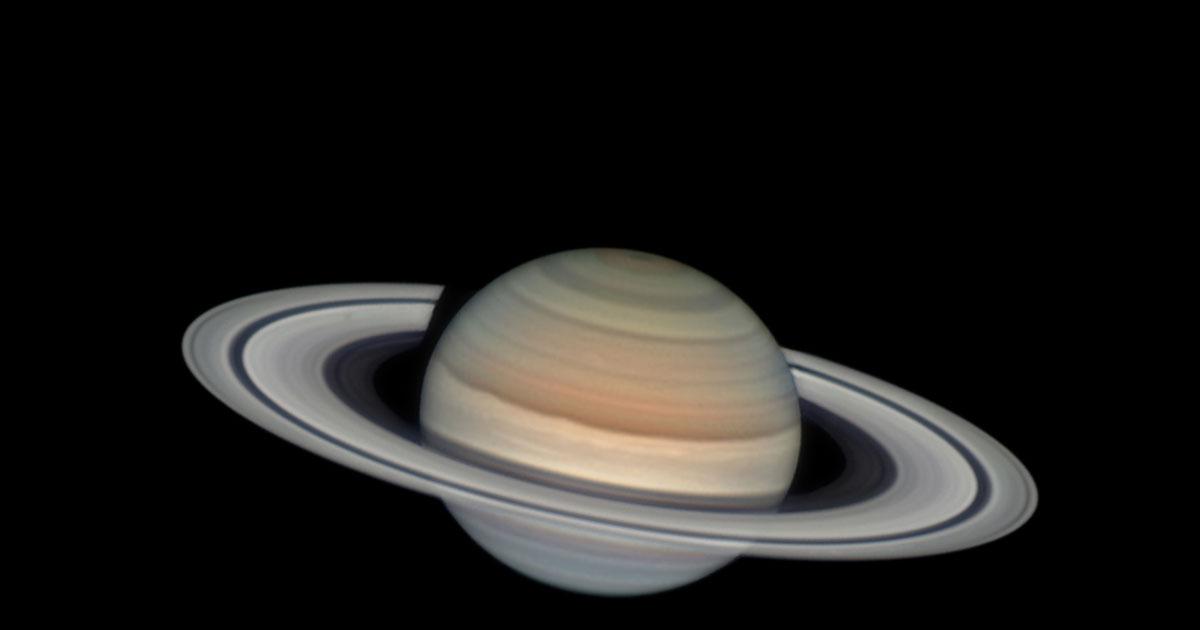 The Cassini Division, the almost 5,000 km-wide gap between the two main ring structures is clearly seen.