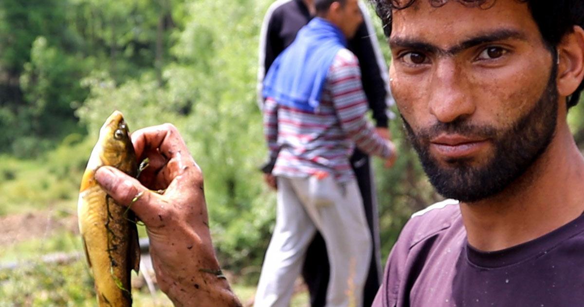Hundreds of men from different villages collectively go fishing to rid the spring water of weeds and silt.