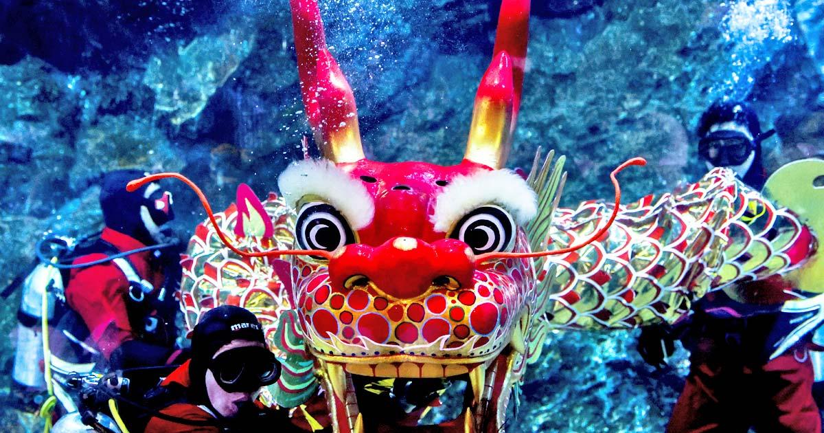 Divers perform a dragon dance ahead of the Lunar New Year celebrations at the Sea Life Bangkok Ocean World aquarium in Thailand.