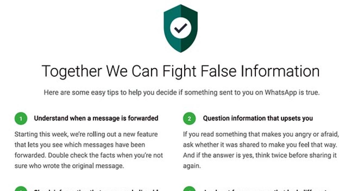 With rumours on Whatsapp triggering lynching in parts of the country, the Facebook-owned messaging service brought out full-page advertisement in leading newspapers, first in the series of its user awareness drive, giving “easy tips” to decide if information received is, indeed, true.
