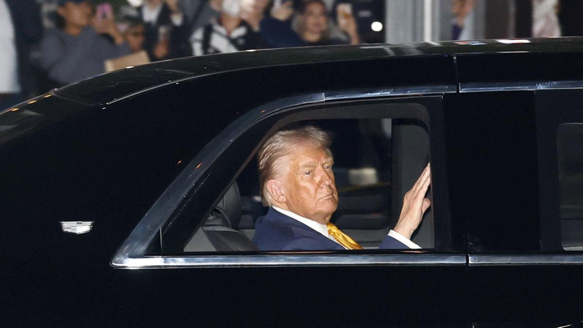 IMAGE: Donald Trump arrives at the Imperial Palace in Tokyo. Photograph: Issei Kato/Pool/Reuters