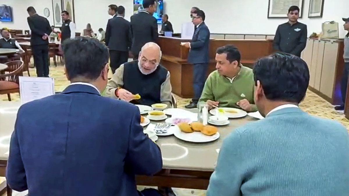 It's not every day that Union Home Minister Amit A Shah forsakes lunch sent from his home and eats lunch in the Parliament canteen.