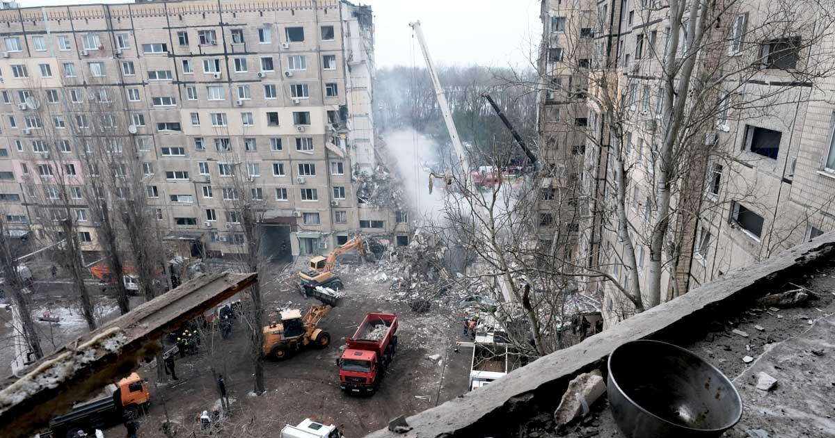 At least 20 people were reported dead after a missile hit the apartment building on Saturday, part of fresh wave of missiles launched by Russia.
