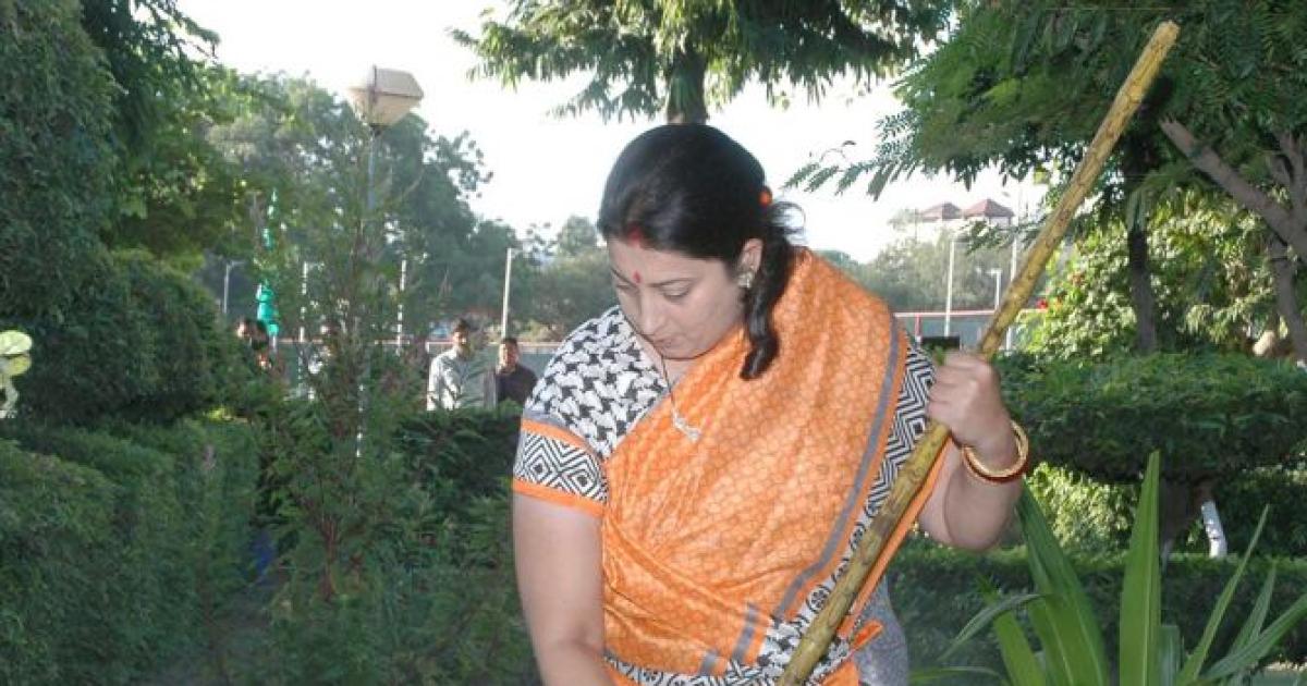 Irani visited Kendriya Vidyalaya at Sector 8 in RK Puram area. She used a broom and shovel to clean the ground of the school and appealed people to become part of this campaign and contribute their efforts to make the drive a big success.