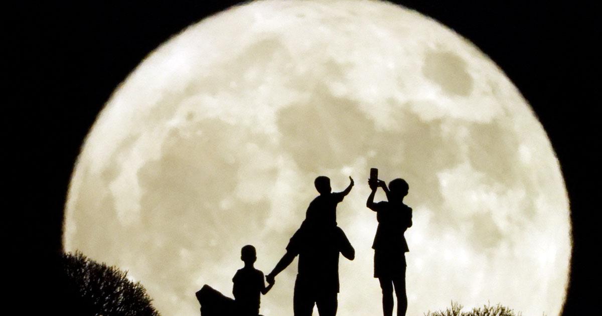 IMAGE: A family with the full moon in the background in Arguineguin on the island of Gran Canaria, Spain. Photograph: Borja Suarez/Reuters