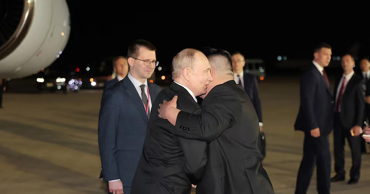 Vladimir Putin -- who only travels to countries (like China, North Korea) where he cannot be arrested and extradited to The Hague to face the International Court of Justice -- embraces Kim Jong Un on his arrival in Pyongyang early on Wednesday, June 19, 2024. All photographs: Korean Central News Agency/Reuters