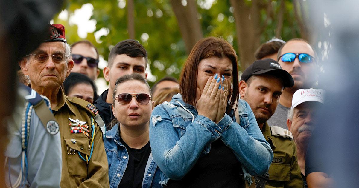 IMAGE: Family and friends mourn at the funeral of Israeli soldier Raz Abulafia, who was killed in northern Gaza, at his funeral in Rishpon, Israel. Photograph: Shir Torem/Reuters