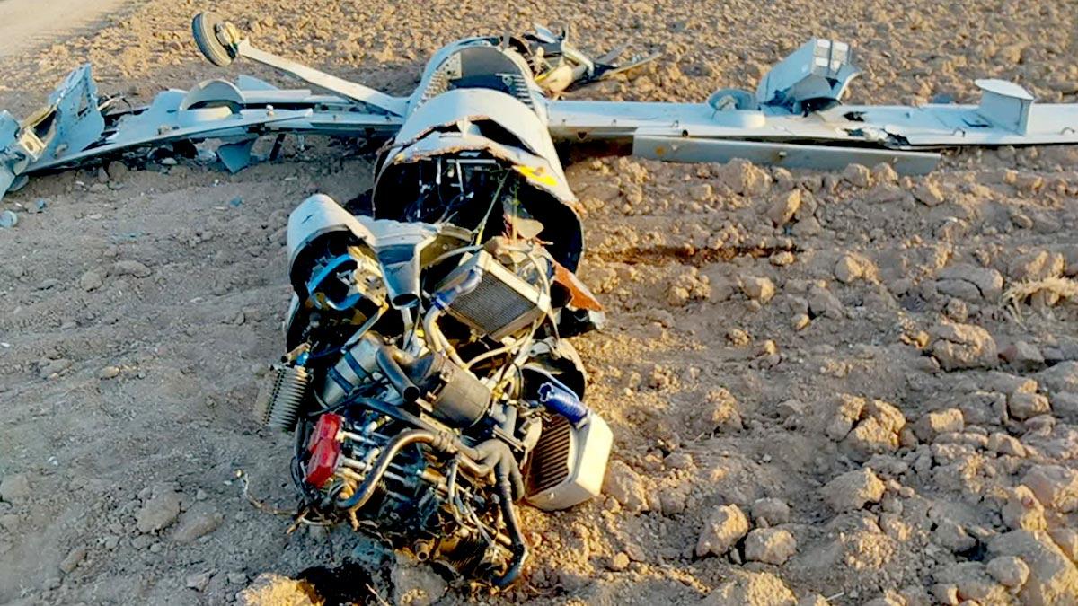 IMAGE: A destroyed drone, which the Iranian army says belongs to Israel, is seen in Isfahan, Iran. Photograph: Iranian Army/WANA (West Asia News Agency)/Handout/Reuters