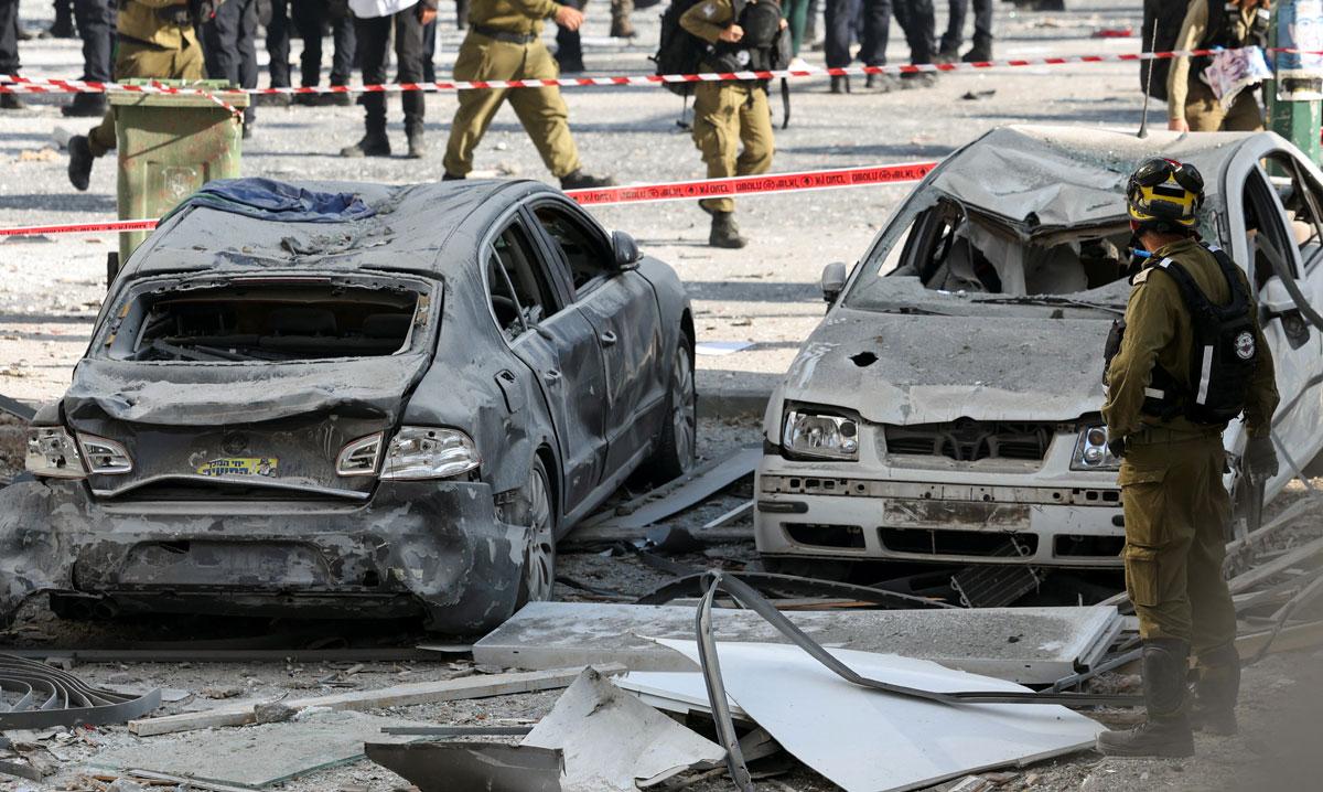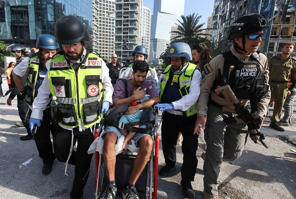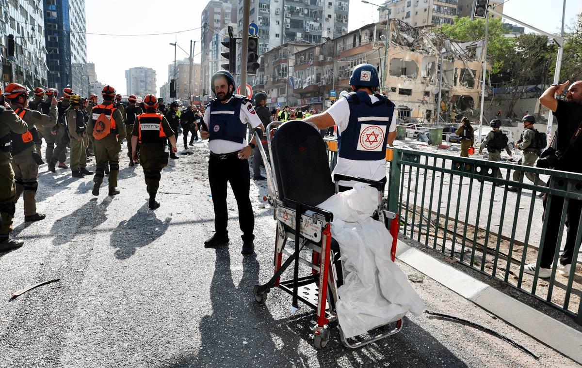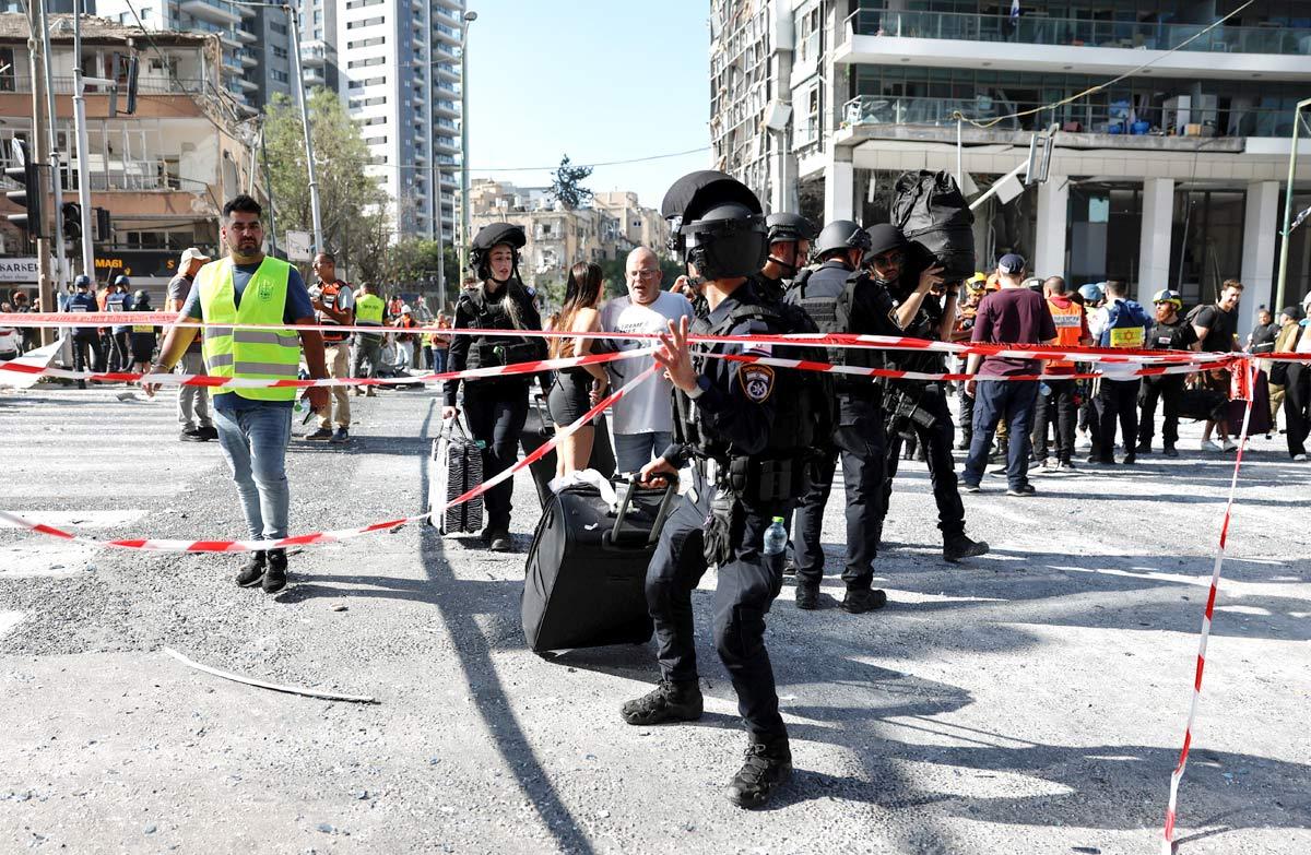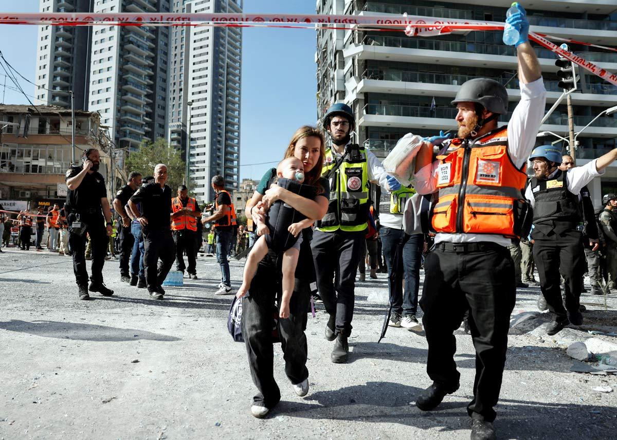 IMAGE: Emergency personnel work at an impact site in Holon, Tel Aviv. Photograph: Violeta Santos Moura/Reuters