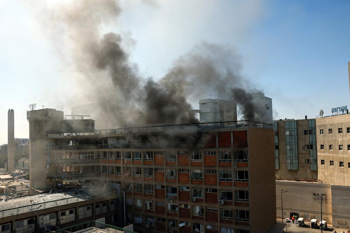 IMAGE: Smoke rises from the Soroka Medical Center. Photograph: Amir Cohen/Reuters