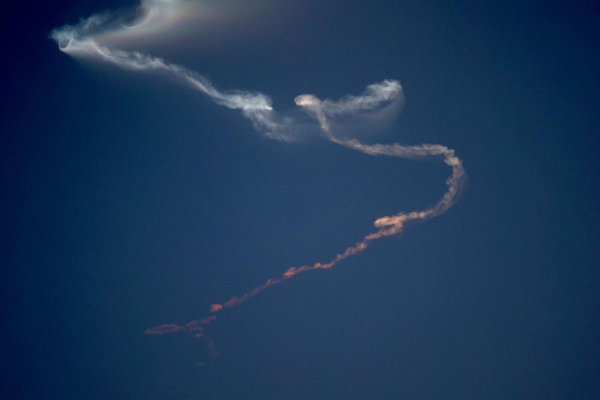 IMAGE: Trace of an Iranian missile is seen in the sky in Tehran. Photograph: Majid Asgaripour/WANA/Reuters