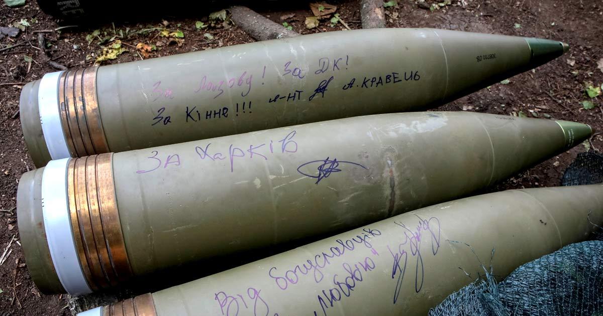 IMAGE: Messages meant for the Russian troops are seen on shells for an M-777 howitzer at an Ukrainian position in the Kharkiv region. Photograph: Vyacheslav Madiyevskyy/Reuters