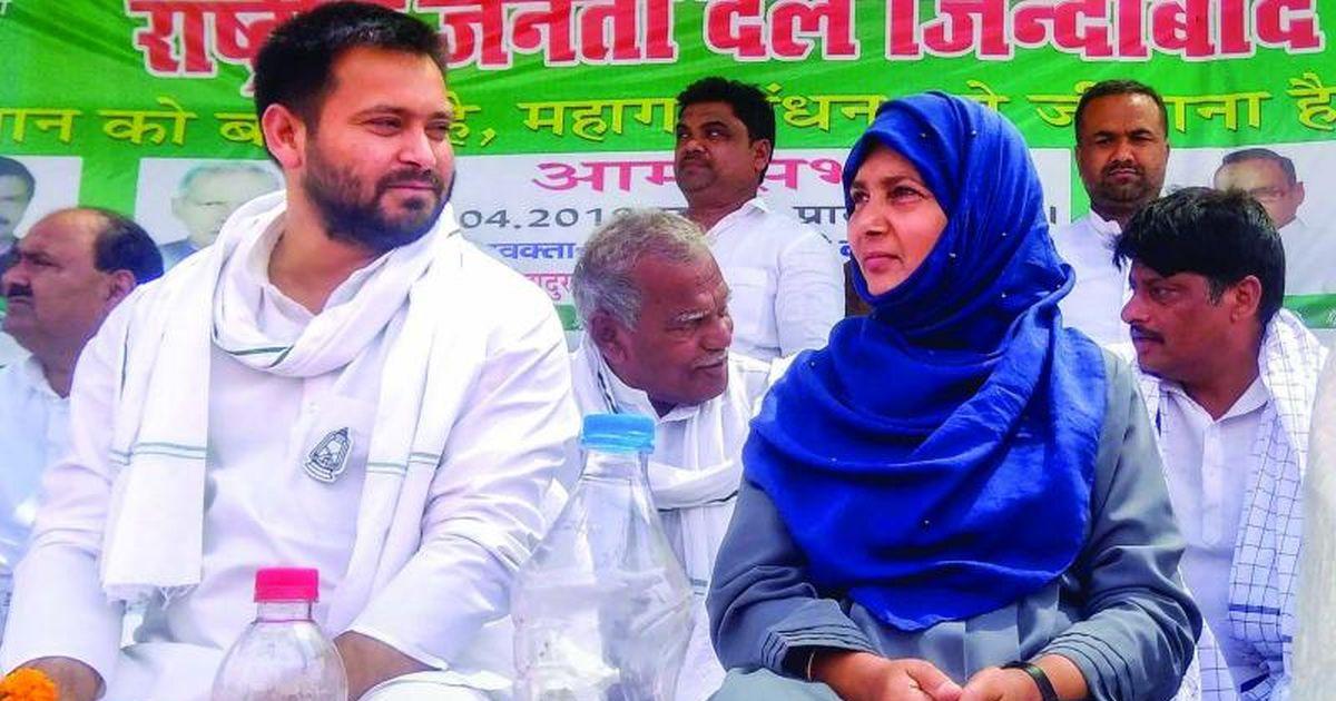 IMAGE: Hena Shahab, the Rashtriya Janata Dal candidate from Siwan during the 2019 general election, with RJD leader Tejashwi Yadav. Photograph: PTI Photo