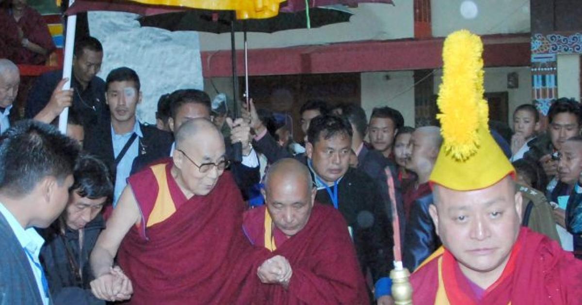 IMAGE: The Dalai Lama arrives at Bomdila in West Kameng district of Arunachal Pradesh on April 4, 2017. Photograph: PTI Photo.