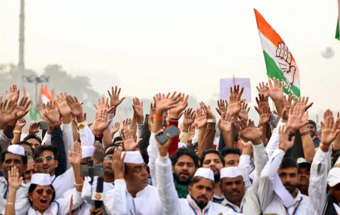IMAGE: Supporters gather in large numbers for the 'Vote Chori' rally, here and below. Photograph: Naveen Sharma/ANI Photo