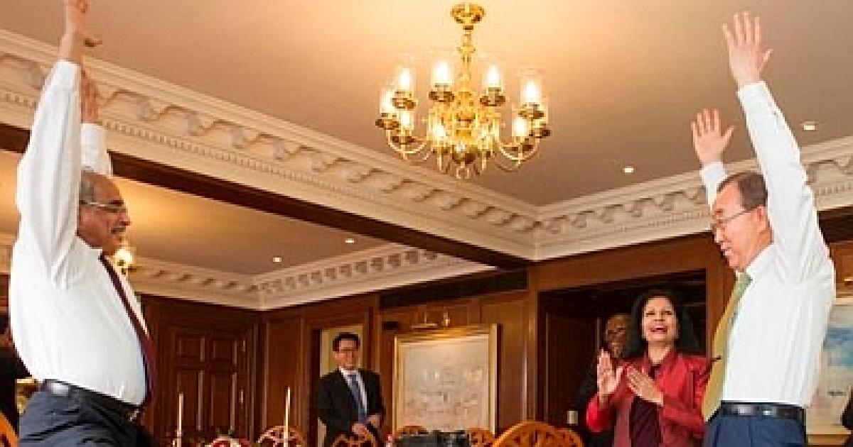 The UN spokesperson had also tweeted a photo of Ban trying to imitate Nambiar while doing his first yoga asana.