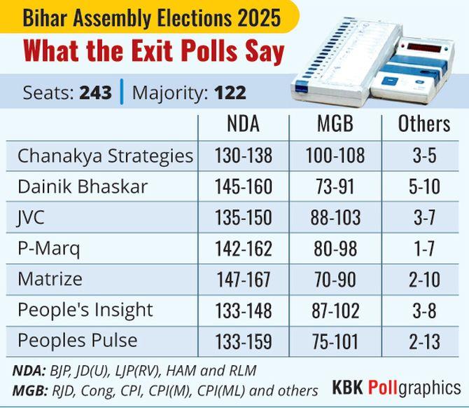 According to the exit polls available from various agencies, the National Democratic Alliance is set to get a clear majority with the Mahagathbandan coming a distant second.
