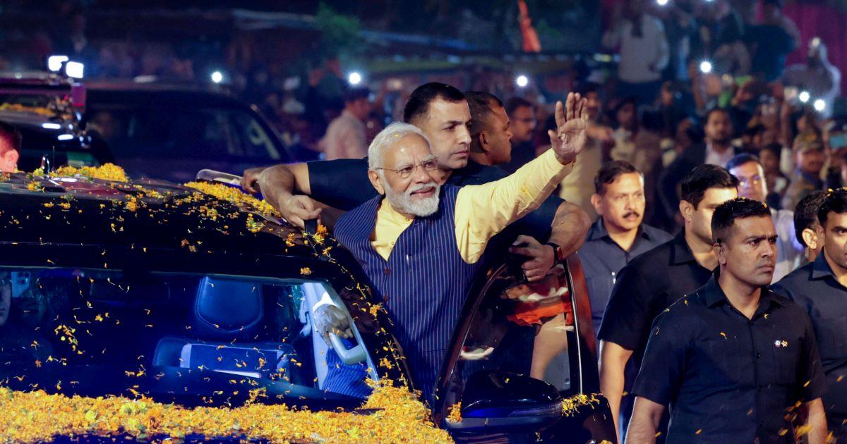 IMAGE: Prime Minister Narendra D Modi at a roadshow in Ranchi, November 14, 2023. Photograph: ANI Photo