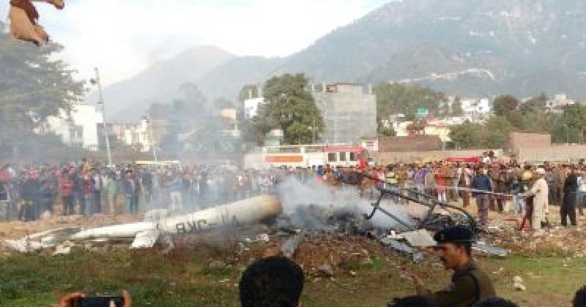 The 2010-make chopper of private airliner Himalayan Heli service, which was carrying six pilgrims from Sanjichat helipad in Trikuta hills, crashed at the new bus stand area in Katra, IGP Jammu, Danish Rana told PTI.