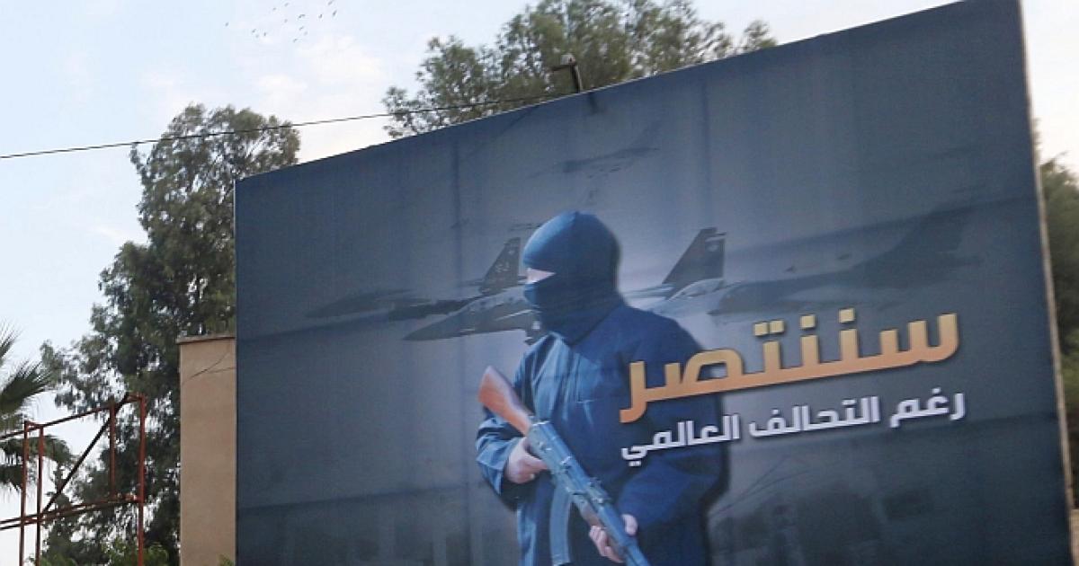 IMAGE: Islamic State billboard, which read: "We will win despite the global coalition", line a street. Photograph: Nour Fourat/Reuters