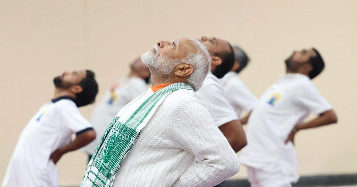 Umar Ganie captures glimpses of Prime Minister Narendra D Modi doing yoga on the banks of the Dal Lake in Srinagar to mark the 10th International Yoga Day on Friday, June 21, 2024.