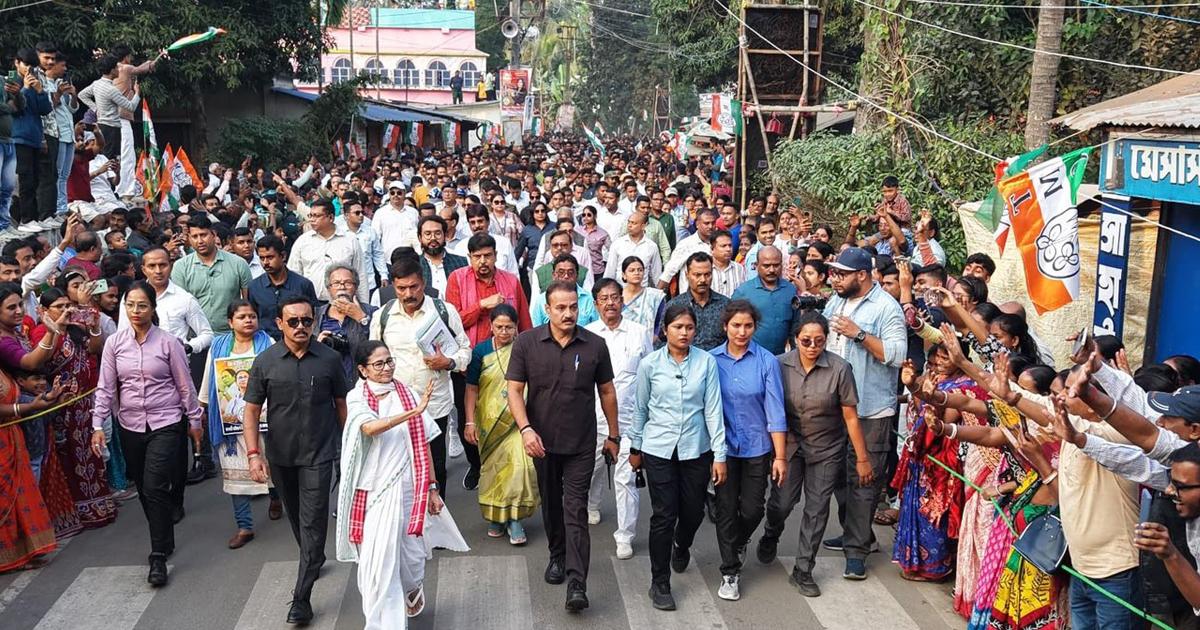 She eventually reached the place around 2 pm to address a massive rally, amid growing panic among people over the ongoing Special Intensive Revision (SIR) of electoral rolls.