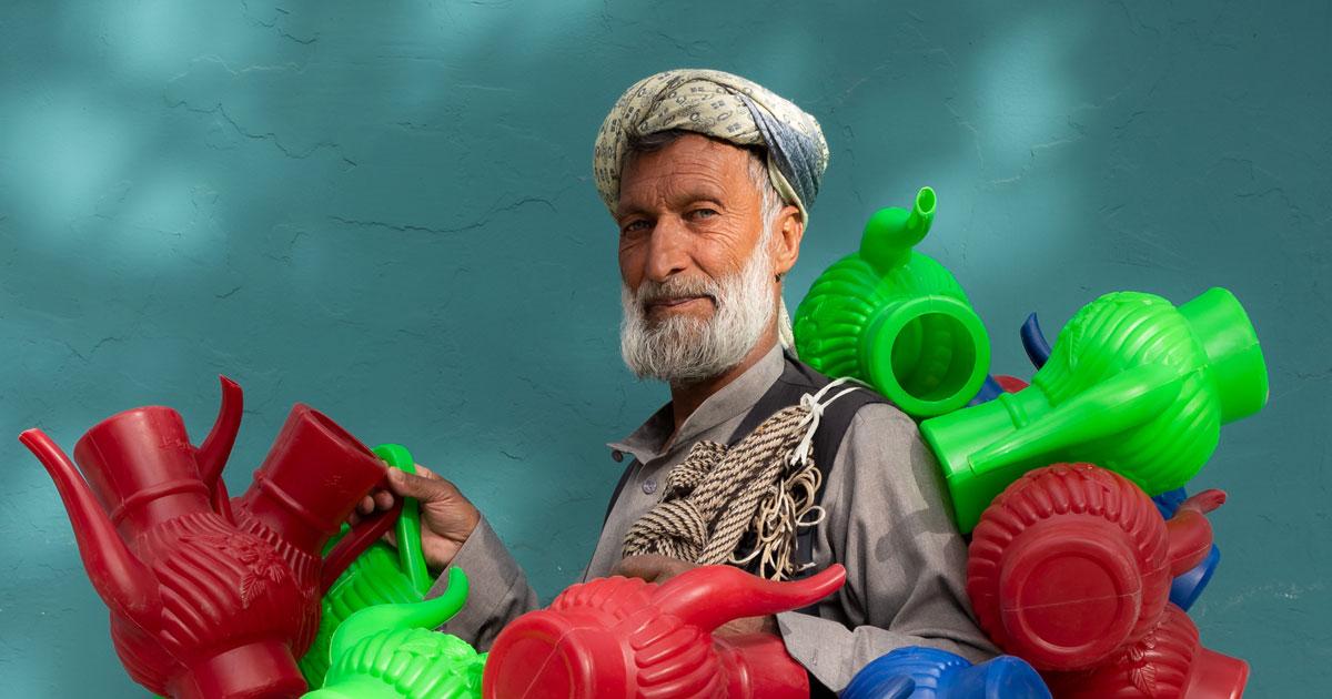 IMAGE: Mohammad Massoud, 63, was photographed in April, during Ramadan. He usually sells vegetables on a cart he pushed through the streets, but during Ramadan -- when observers fast during the day -- watering cans sell better. He wasn't too concerned about the imminent departure of foreign forces.