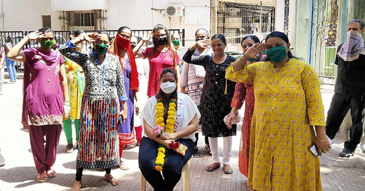 She spent two months at the centre without going back home. When she finally got home, the residents showered her with petals and saluted her.