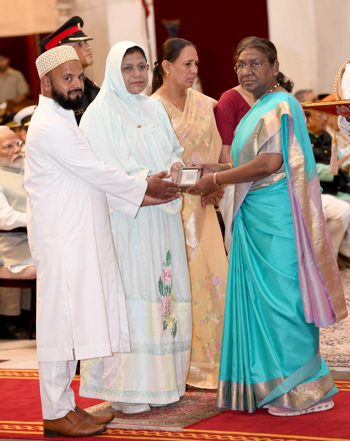 At the solemn ceremony at Rashtrapti Bhavan, Mr and Mrs Bohara accepted the medal while their daughter and son-in-law sat among the guests.