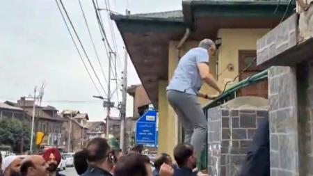 Visuals of Jammu and Kashmir Chief Minister Omar Abdullah scaling the gate of the Naqshband Sahib graveyard and jostling with securitymen deployed there have gone viral.