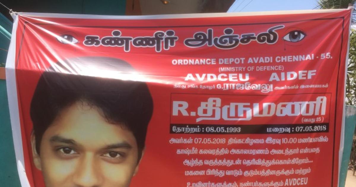 On May 7, his 25-year-old son, R Thirumani, who was visiting Kashmir as a tourist, was killed when a mob went on the rampage near Narbal on the outskirts of Srinagar and resorted to stone-throwing.