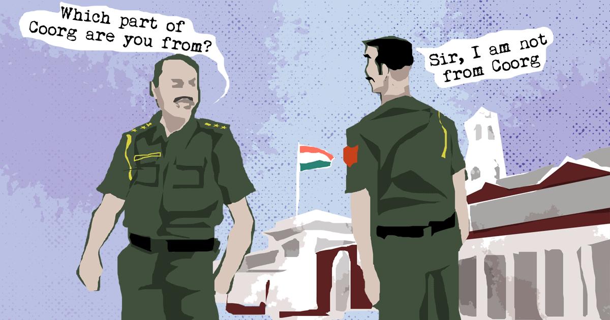 On my very first day in the Indian Military Academy, Dehradun the very first officer to whom I reported and mentioned my name asked me, "Which part of Coorg are you from?" "Sir, I am not from Coorg," I replied.