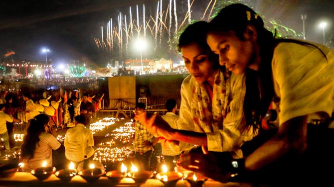 Behind the spectacle lies careful management. More than 10,000 volunteers, mostly college students and women, handle diya placement and crowd control.