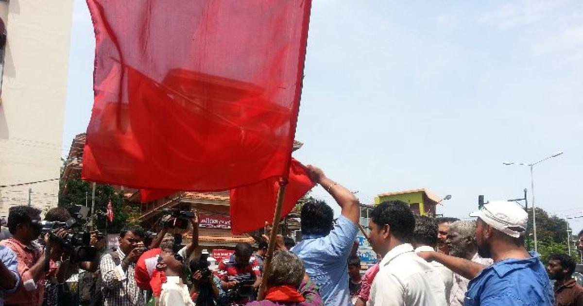 A handful of party members sat with the media and watched the results on television. Outside the party office, on the road, three or four party activists draped in red, shouted 'Lal Salaam!' and danced, waving the CPI-M flag.