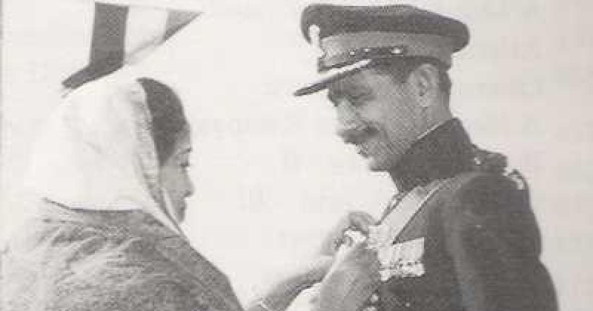 Photograph: Former West Bengal Governor Padmaja Naidu confers the Vir Chakra on Major-Gen D K Palit