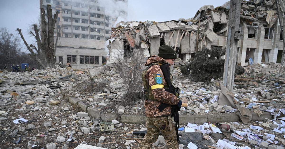 IMAGE: A school building in Ukraine destroyed by Russian shelling. Photograph: Viacheslav Ratynskyi/Reuters