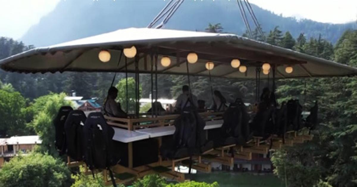 Daman Kapoor, who owns the restaurant, says, "Open-air flying dining at a height of 160 feet gives a 360 degree bird's-eye view of Manali. People are enjoying this adventurous experience."