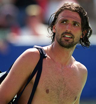 Goran Ivanisevic of Croatia leaves the court topless after his win against Cedric Pioline of France in the first round. Ivanisevic defeated Pioline 6-4, 2-6, 7-5, 1-6, 9-7. NEXT Clive Brunskill/ALLSPORT |