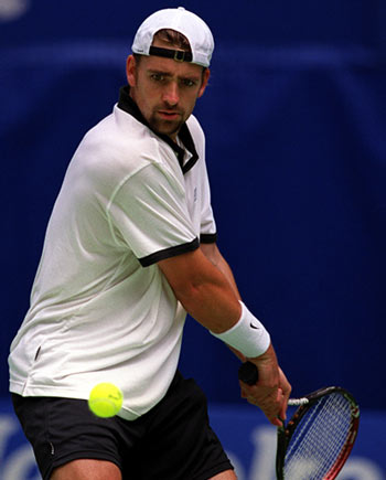 Nicholas Kiefer of Germany judges his return against Karim Alami of Morocco in the third round. Kiefer defeated Alami 6-3, 6-4, 6-2.