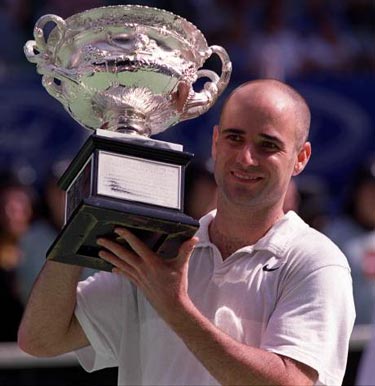 The 29-year-old Las Vegan who won in Melbourne in 1995, with the Australian Open trophy.