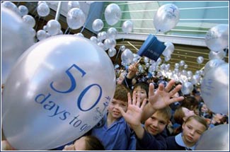 The Final Countdown to Sydney 2000 From September 15 to October 1, the eyes of the entire planet will be focussed on Sydney, Australia as the spirit of Olympia descends upon this beautiful city. Here, Sydney schoolchildren join in a ceremony to mark 50 days before the start of the 2000 Olympic Games. Scott Barbour/ALLSPORT NEXT |