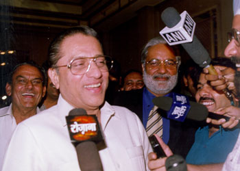 All the BCCI men Jagmohan Dalmiya in a jubiliant mood as he answers questions from the media. I S Bindra, in the background, watches. NEXT |