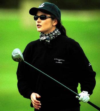 Catherine Zeta Jones practices before the Pro-Am of the Alfred Dunhill Cup played on the Old Course at St Andrews, Scotland.