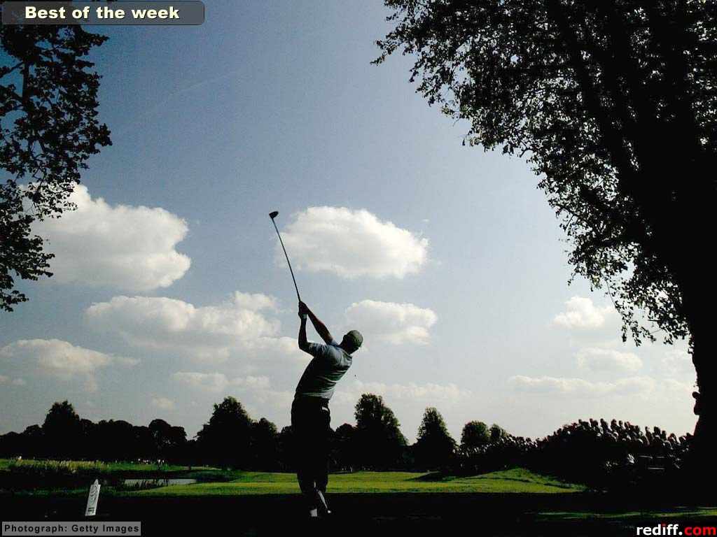 Padraig Harrington of Ireland hits his tee-shot on the 17th hole during the first round of the American Express Championship at Mount Juliet Golf Club, Kilkenny, Ireland.